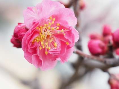 また、校庭のすみずみには、いろいろな植物が新しい芽を勢いよく吹き出そうとしています。桜は今か今かとつぼみをふくらませて咲く準備をしています。花が美しく咲く春が訪れました。運動場に出てよく遊んでいますが、植物や木もよく見てください。