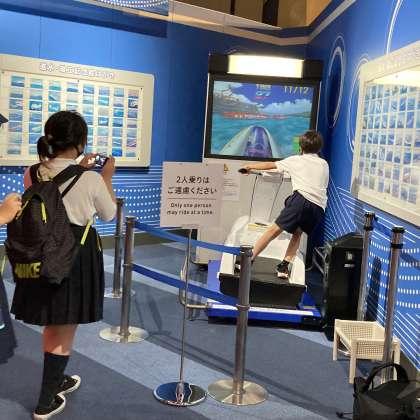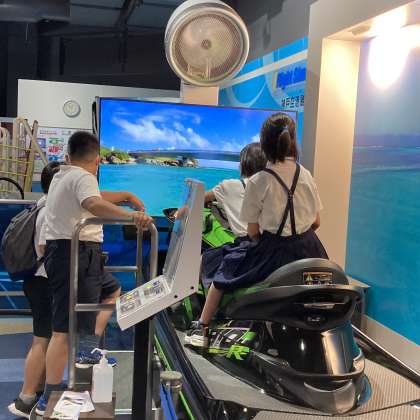 弁当の後には、カワサキワールドと海洋博物館の見学です。バイクや電車、ジェットスキーなどさまざまな乗り物に触れるなど、班で自由に活動しました。
