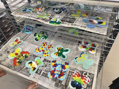 図画工作科で蝶の羽の模様をデカルコマニーという技法を使って表現しました。
