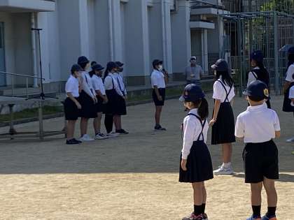今日は久しぶりに運動場での児童朝会でした。校長先生からは、自転車の乗り方や信号に気をつけて「交通ルールを守ろう」というお話がありました。そのあと各委員会の委員長から仕事の紹介と、1年間のめあての発表がありました。