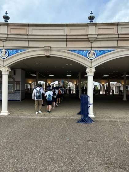 無事、志摩スペイン村に着きました。集合写真を撮ったあと、担任の先生の話を聞いています。さて、今から入ります。