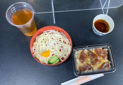 昼食はてごね寿司と冷やしうどんをいただきました。