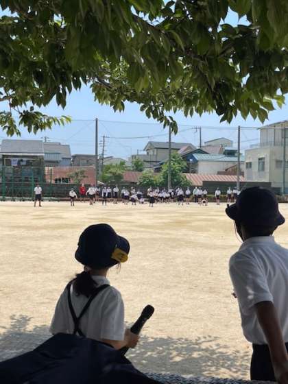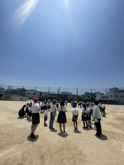 以前から約束をしていた遊びの会を行いました。6年生が1年生に遊び方を優しく教えていました。「だるまさんがころんだ」などで楽しく遊ぶことができました。