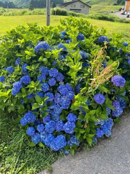 魚つかみをした場所から宿舎へ帰る途中にハチ高原の綺麗な紫陽花を見ました。