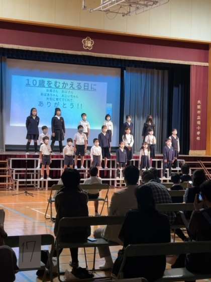 4年生は各教科(算数、社会、国語、理科)の発表でした。まるで授業を受けているようでした。説明がよくわかりました。10歳を迎えて「大切に育ててくれてありがとう」と言う言葉を家族の方やおじいちゃん、おばあちゃんへ感謝の気持ちを込めて歌を歌いました。