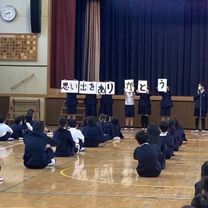 今日は、児童会から卒業を祝う会のめあてが発表されました。今年のめあては「思い出をありがとう」です。6年生への感謝やお祝いの気持ちが伝わる、楽しい会になるといいですね。