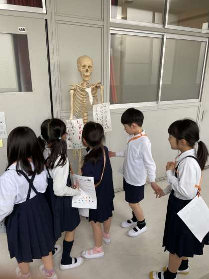 2年生が1年生を連れて案内する順序を考えて、下調べもして準備してくれました。なかよく楽しく校内を回ることができました。