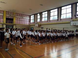 今日の児童集会で、運動会で歌う曲を練習しました。最初はあまり元気のない歌声でしたが、2回目には元気一杯歌うことができました。