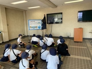 浄水場の仕組みについて説明を聞きました。みんな熱心に聞いていました。