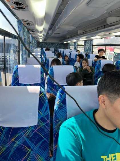 高速に入り、楽しいバスレクが始まりました。いろいろな答えがでてきます。みんな笑顔いっぱいです。