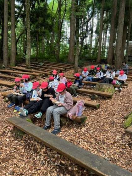 入山式のあと、美味しいそうに食事をしています。全員元気です。
