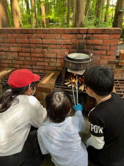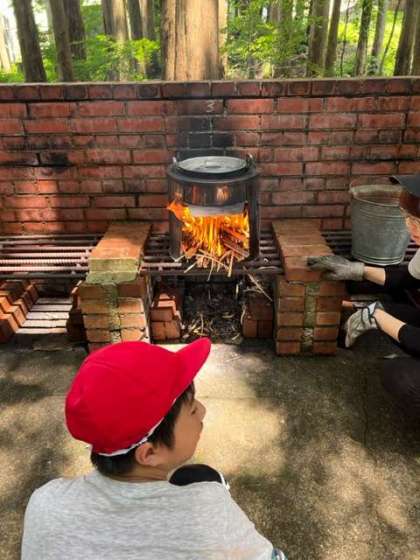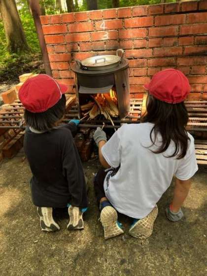 鍋の中にカレー粉や具材を入れてあたためています。どんなカレーができるかな?楽しみですね。