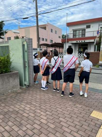 昨日4日からあいさつWEEKが始まりました。全学年が交代で正門前に立ち、「おはようございます」と大きな声であいさつをしています。登校してくる児童も大きな声であいさつをしてくれます。