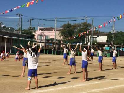 日曜日に運動会を控え、今日の1、2時間目に全員で応援合戦と閉会式の練習をしました。子どもたちも盛り上がっています。