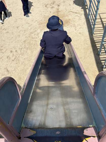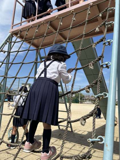 4月12日(金)1年生は、2年生に、小学校ではどんな学習や活動をするのかを教えてもらったあと、一緒に紙飛行機を作って飛ばしました。その後の休み時間は、遊具で遊びました。順番を守って、安全に楽しく遊べました。