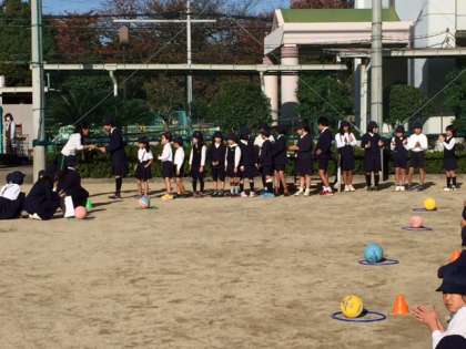 気持ちのいい青空の下で、児童集会を行いました。ボール運びゲームは、4B班が2連勝しました。続いて、先日の全校遠足オリエンテーリングの成績発表があり、5B班が91点で優勝しました。みんな、よく協力できました。