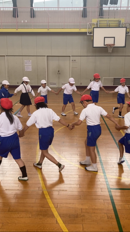 スポーツフェスティバルに向け、今日の体育では全校演技、マイムマイムの練習をしました。