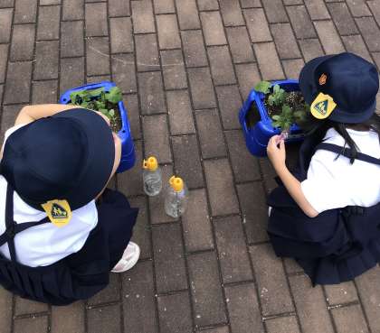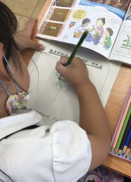 5月に種を植えたあさがおが、ぐんぐん成長しています。