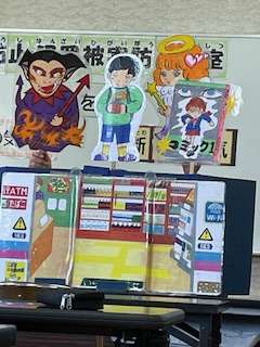 梅田少年サポートセンターの方々に講師として来ていただき「非行とは何か」「非行に走ってしまうとどうなるのか」「非行に走らないためにどういった心構えが必要か」「犯罪から自分の身を守るためにどうすればいいか」などについて、スライドやペープサートを用いて教えていただきました。