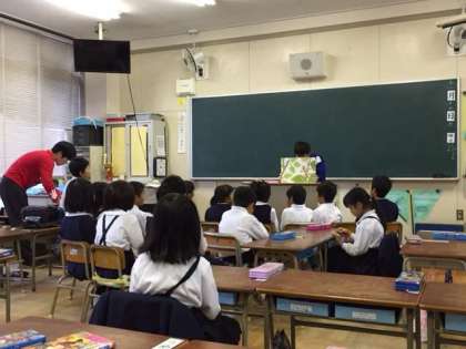 木曜日の朝15分間は、読書タイムです。1年生と4年生に職場体験の中学生が紙芝居を読んでくれました。他の学年は、各自が学級文庫などの好きな本を静かに読んでいました。