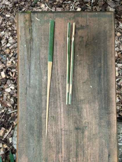 この後の魚つかみでつかんだ魚を自分の作った竹串に刺して、焼いて食べます。