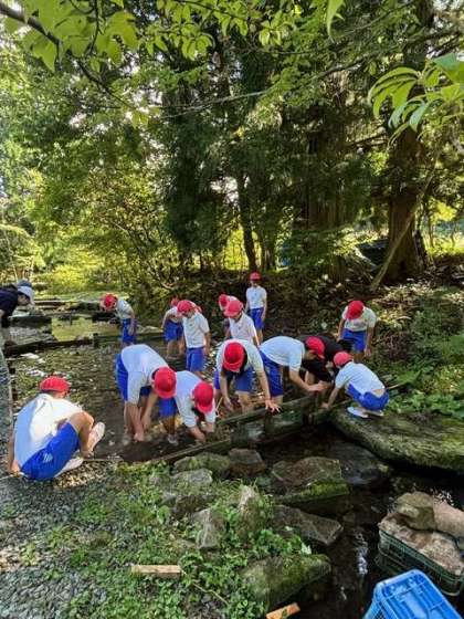 アマゴ ヤマメがいますが、とてもすばしっこく、みんな苦戦しています。