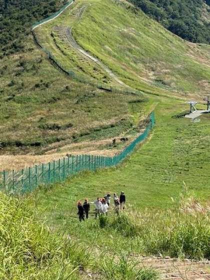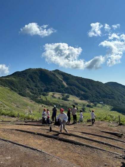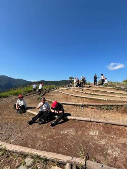 みんなで協力して声を掛け合い、高丸山の山頂に全員登ることができました。