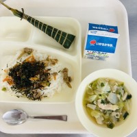 今日のメニューは皆がとても楽しみにしていたようで、朝から「今日はエビフライカレーやで」という声が聞こえてきました。中には先週からチェックしていて、エビフライはどれ位の大きさで、どんな形状なのかなど質問してくる児童もいました。