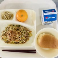 鶏肉の梅風味焼きは、鶏肉を梅肉、砂糖、しょうゆで味付けし、玉ねぎと合わせて焼いたものです。初めて登場する献立でしたが、梅のほのかな酸味で鶏肉がさっぱりと食べやすく、ご飯にもよく合って好評でした。