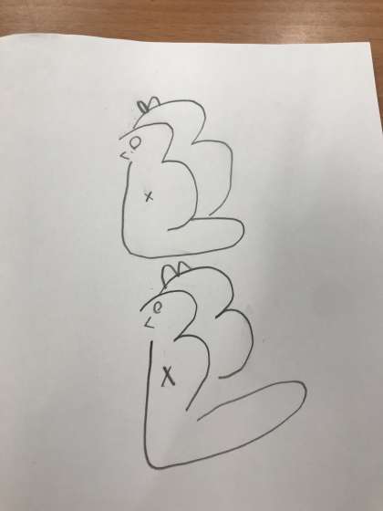 絵描き歌の「さんちゃんが」では、歌い終わると同時に上手にたぬきの絵が完成しました。