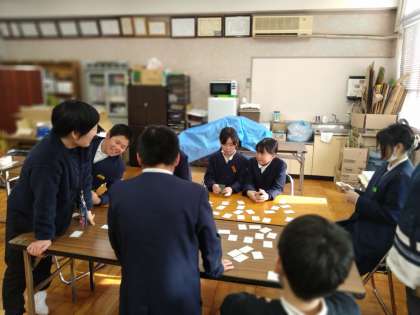 よく似た下の句があるので、みんな目を皿のようにして、真剣に札を探していました。