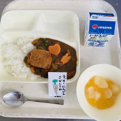 今日の献立は、牛乳、カツカレーライス、フルーツゼリーでした。