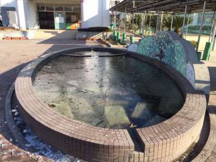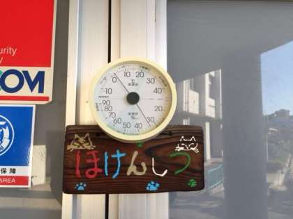 玄関の池に氷が張りました。厚さは1.5cmほどで、登校してきた児童が歓声を上げて氷を触ったり割ったりしていました。9時半現在の外気温は保健室前の温度計で2.8度です。