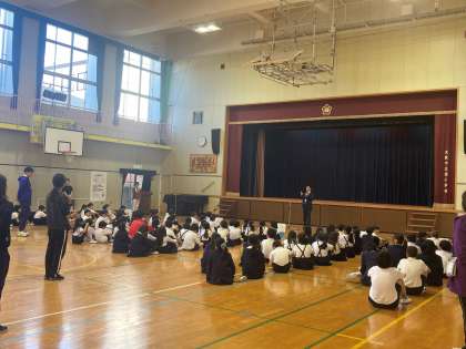 福小学校では、「朝の学習時間」を確保するために「朝会」ではなく「昼会」を実施しています。
