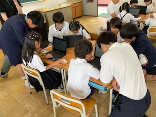 パスワードの入れ方も6年生が教えて、その後に1年生だけでできるか見守りました。