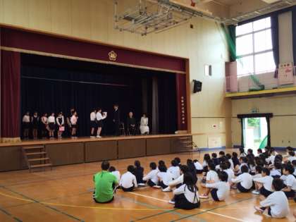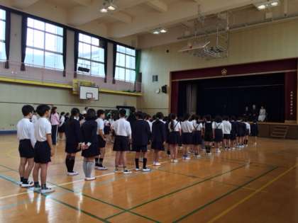 3時間目には転任された吉次前教頭先生、田先生、近藤先生にお越しいただき、児童が感謝の言葉を述べた後、各先生方からお言葉をもらいました。あいにく所用にてお越しいただけなかった教職員の方々にも、児童代表が感謝の手紙を読み上げ、その様子を録画したので後ほど見ていただけるようにします。式の最後に全児童で校歌を歌いましたが、清々しく元気いっぱいで、聞いていて感動しました。