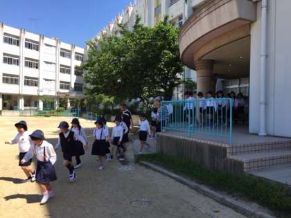 熊本地震からまだ日も浅く、東南海地震の発生が危ぶまれている中、どの児童も緊迫感を持って訓練に参加してくれました。もしその時が来てもあわてず、訓練通りに「お・は・し・も」で、大切な命を守るため、素早く安全に避難しましょう。