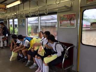 ローカル線で、鳥羽駅に向かっています。疲れた様子もなく、元気です。