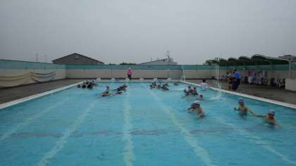 安全のためのルール確認をしたあと、水につかって身体をならし、ペア学年で宝探しなどをして1年ぶりのプールを楽しみました。