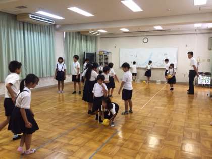 多目的室では、ペットボトルでボーリングをしました。ボールが軽いので、なかなか倒れてくれません。