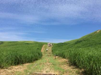 全員、高丸山の頂上に到達しました。日差しは暑いのですが、涼しい風が吹いています。みんなよく頑張りました。