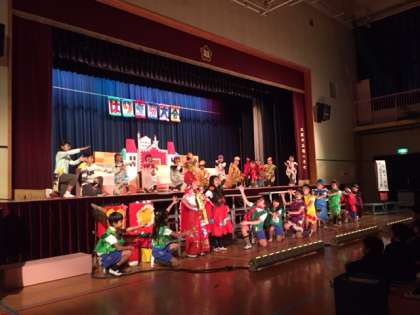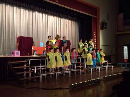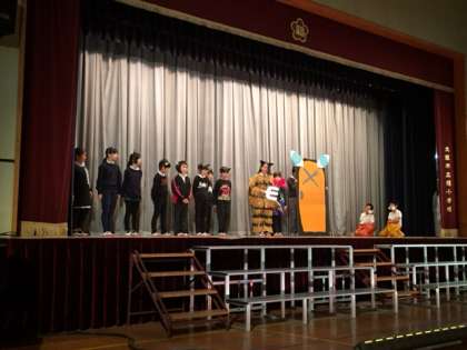 2年ごとに実施している学芸会を、今年は土曜授業として行いました。大勢の保護者、地域の方々に見守られ、子どもたちは日頃の練習の成果をしっかり発揮してくれました。出演順に、1年生の「しかくが すきなおうさま」、3年生の「はりきり王国」、5年生の「注文の多い料理店」のエンディングシーンです。