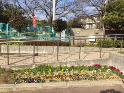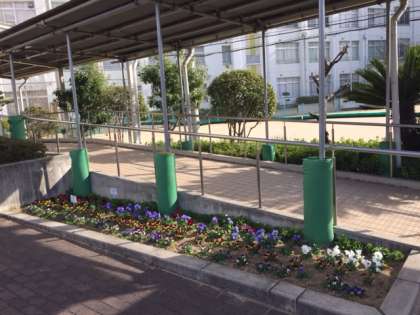 さて、曜日のいたずらで例年よりも3日遅い始業式をまちわびて、正門前の花壇でパンジー、ビオラ、金魚草にノースポールが咲き誇っています。これらは、昨年秋に花と緑の農芸財団が主催している「育てよう、花と緑、校庭に」という花の輪運動にめでたく当選して、送られてきた300株の苗が育ったものです。