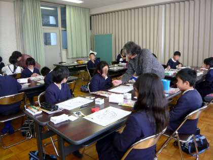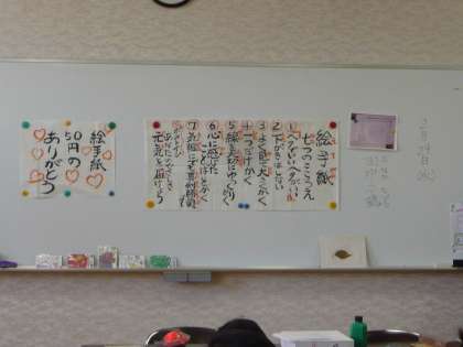 地域の方から、1年生と4年生に絵手紙の書き方を教えていただきました。日用品をテーマに描くことができました。