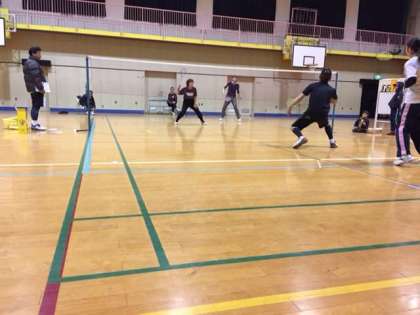 福小学校では、バドミントンの試合が、和気あいあいとした雰囲気の中で繰り広げられています。