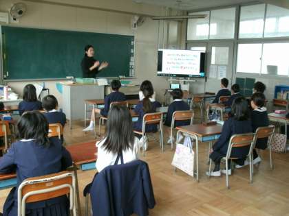 本校でも、今年度より英語のモジュール学習を開始しました。Fuku Timeと名付けて、8:45と13:45からそれぞれ5分間英語を聞いてしゃべる活動をおこないます。コミュニケーションの手段のひとつとして、使えるようになることが目標です。