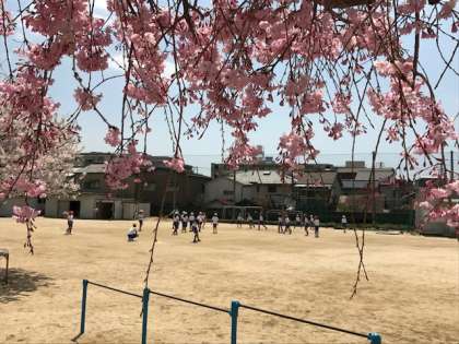 久しぶりに気持ちのいい青空の下、6年生が体育の授業をしていました。最高学年になって気合も十分。男女仲よくドッジボールに取り組み、大きく柔らかいボールをどうしたら早く投げられるか工夫していました。