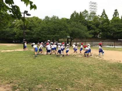 お弁当を食べ終わったら、早速遊び始めました。2年生がリーダーシップを発揮して、おにごっこする人!ダルマさんが転んだする人!と、にぎやかに、仲良く遊んでいます。