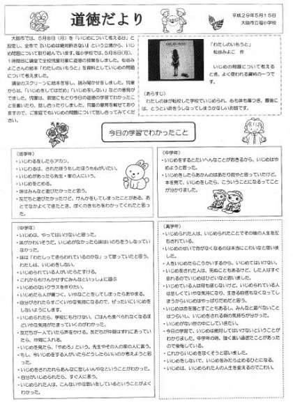 道徳だより−5月8日いじめについて考える日の振り返り