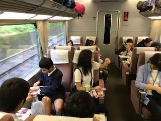 おやつタイムが始まり、いよいよ盛り上がってきました。磯部駅に着くのは、10時58分の予定です。